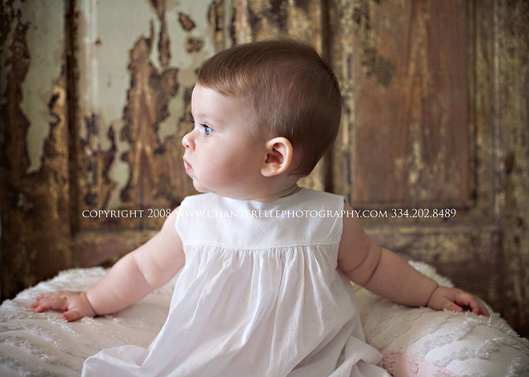 Anna Beth’s 6 month session was a great example of making the most of what you’ve got! Her mom brought a dress with a matching bonnet, and we ended up using the slip that goes underneath all by itself for the majority of the session because it was so simple and sweet. We also used the bonnet by itself (too cute with just a diaper on), and turned another dress inside out! Sometimes you just have to think outside of the box!