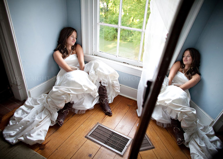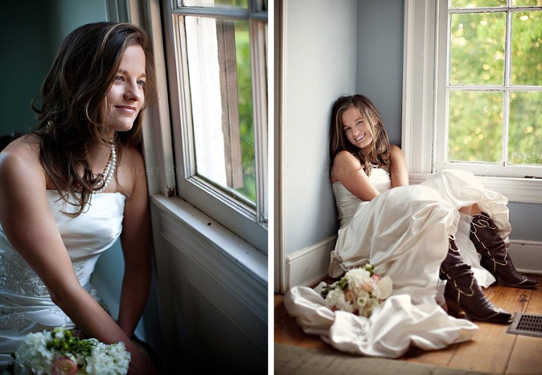 Bridal portraits can be tricky to do creatively – brides are often afraid of getting their dress dirty before the big day, and don’t want to do anything other than stand in one place. I understand. Wedding dresses are expensive. It’s your dream dress. And I’m certainly not going to try and drag you through a mud pit for your bridal portrait (AFTER the wedding is fair game!). But I figure it’s best to make an effort to get some awesome pictures and just plan on the dress getting a little dirty on the bottom (let’s face it, that can happen just getting in and out of the car the day of the wedding). I’m know I’m biased but I say cool bridal portraits are worth spending the money to get the dress spot cleaned if it really needs it! And if there’s anyone who’s willing to do what it takes to get the shot, it would be Blair! Who else would show up with some kick butt cowboy boots?.jpg)