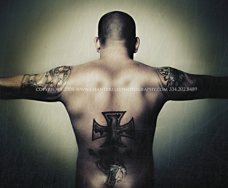 Every photographer I know (including me) will tell you that they see pictures in their heads. I had the idea for this session in my head for about two years. I wanted to shoot a grittier version of the old school Calvin Klein ads – with simple backgrounds and dramatic lighting like those ads, with a grungy twist. Think Calvin Klein with a dose of Fight Club thrown in. The problem was, I knew exactly the kind of guy I wanted for the shoot and couldn’t find anyone that fit the pictures in my head, because the look I wanted was very specific. Then I had one of those “smack-my-forehead-should’ve-had-a-V8” moments when I realized that I DID know a guy that would be perfect for it. So I got in touch with my friend’s brother Chad, and he was all for it. It only took about a year for us to get it worked out, but I got EXACTLY what I saw in my head and there’s not much that’s better than that!