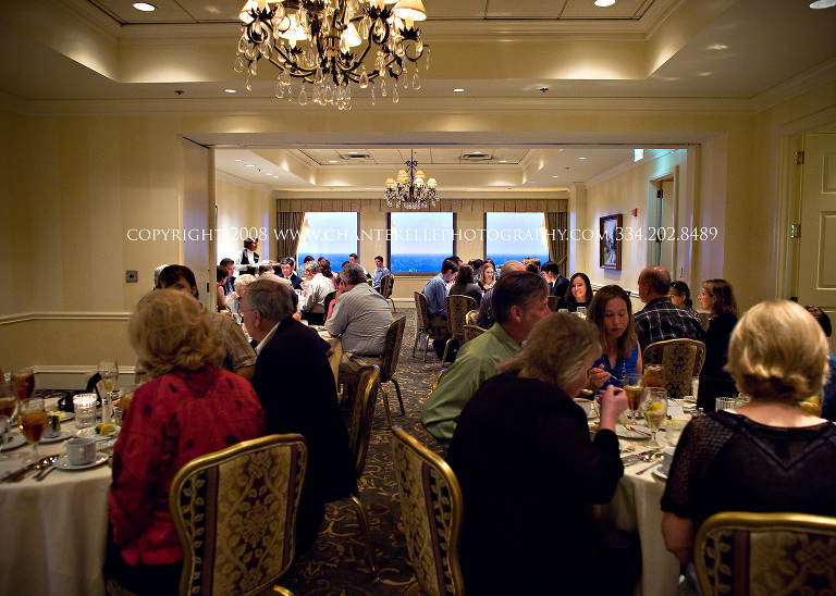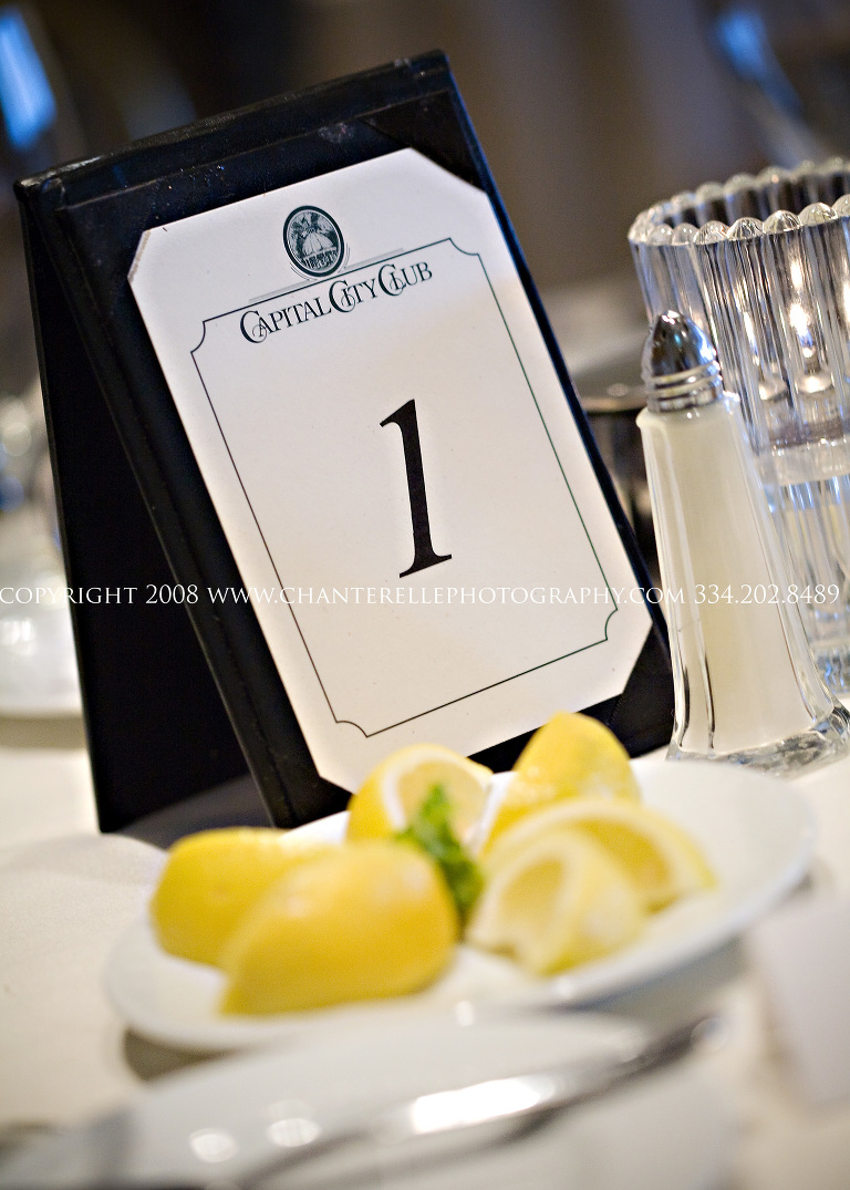 I was asked to go high above downtown Montgomery to the beautiful Capital City Club, where Madalyn & Jerrod’s family and friends got together to celebrate the night before their wedding day. They were treated to a fabulous dinner courtesy of Jerrod’s parents, and a spectacular view – including a brightly lit Riverwalk Stadium, where the Biscuits were playing that night!