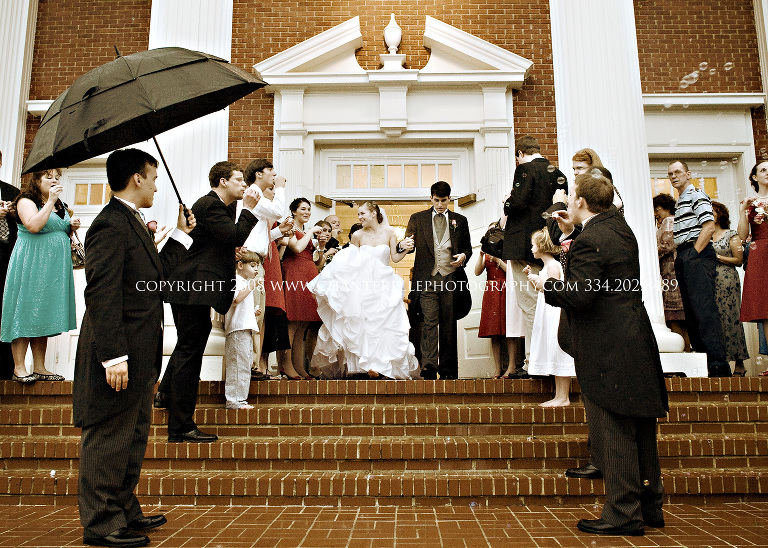 The day started out hot at Morningview Baptist Church – and just before the ceremony, the bottom fell out. Despite a huge thunderstorm and Jerrod trying to put the ring on Madalyn’s RIGHT hand, they made it and got married (just teasing Jerrod, it happens all the time!). The reception was conveniently held downstairs, complete with goodies from Uniquely Yours Cakes & Catering. I love these two because they are up for anything (remember their engagement session in the fountain?), and they didn’t let a little rain get them down. We still did their formal portraits outside, and when it was time to leave in a shower of bubbles, we grabbed an umbrella, Madalyn kicked off her shoes, and they went for it! Thanks Madalyn and Jerrod – I was happy to get rained on with you!