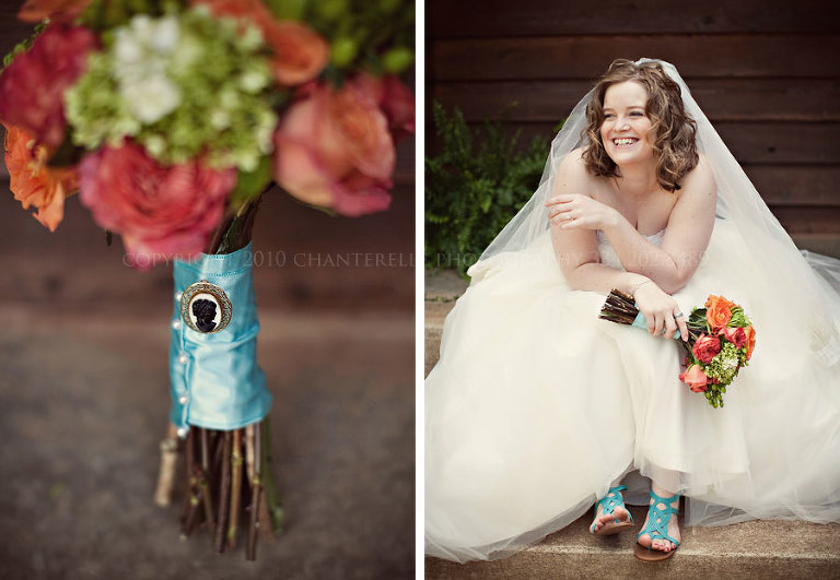 Emily put a personal and vintage twist on every last detail. She made her own bouquet and the cameo that was pinned to it was given by her dad to her mom on their wedding day. She wore the same veil her mother wore. And her dress? She bought the lace bodice on Etsy before she bought the dress – and just happened to find a dress later that the bodice fit over perfectly. Serendipity at its best!