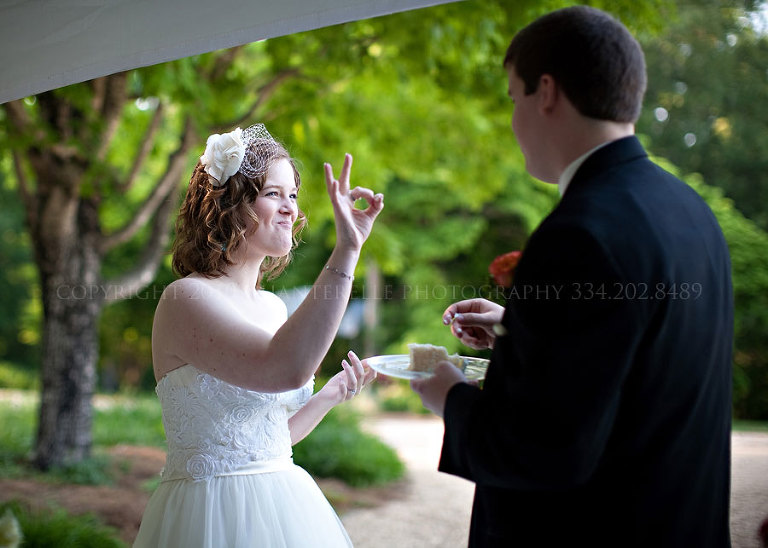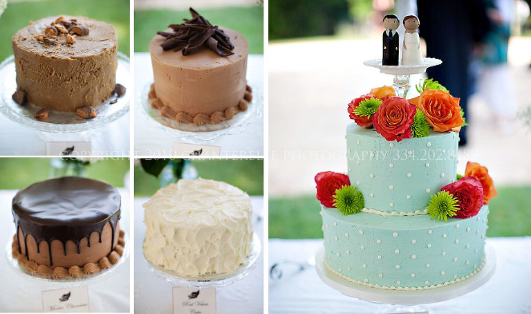 Their cake table had not one, not two, but five cakes, courtesy of Teresa’s Catering, so guests could choose what they wanted. The mini cake buffet featured traditional flavors like white cream cake and yellow cake, and Southern favorites like red velvet and caramel cake.